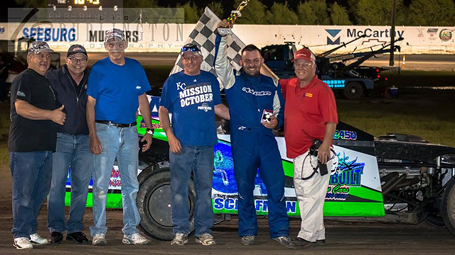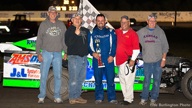 Six drivers found their way to McCarthy Auto Group Victory Lane at the Lakeside Speedway Friday night on Harrington Bros HVAC Night at the historic dirt oval in Kansas City, Kan.