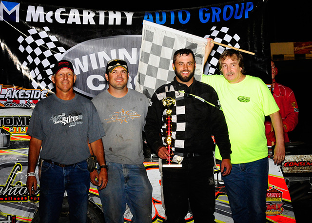 For a second time this season the USRA A-Modified feature saw a first time winner and his name is John Stiens. While Stiens has won multiple feature races this was his first at Lakeside. The 25-lap event started out with Terry Schultz taking the early lead and Steins taking control on lap 4. Current point leader, Nic Bidinger, kept working his way toward the front, taking advantage of a perfect line coming out of two, and took the lead on lap 14. Bidinger led only two laps before Steins used lapped traffic perfectly and regained the lead on lap 16, never looking back on his way to victory lane. Bidinger finished second to a hard-charging Tim Karrick. Last week’s winner, Kerry Davis, finished fourth while Mark Hoover rounded out the top-five.