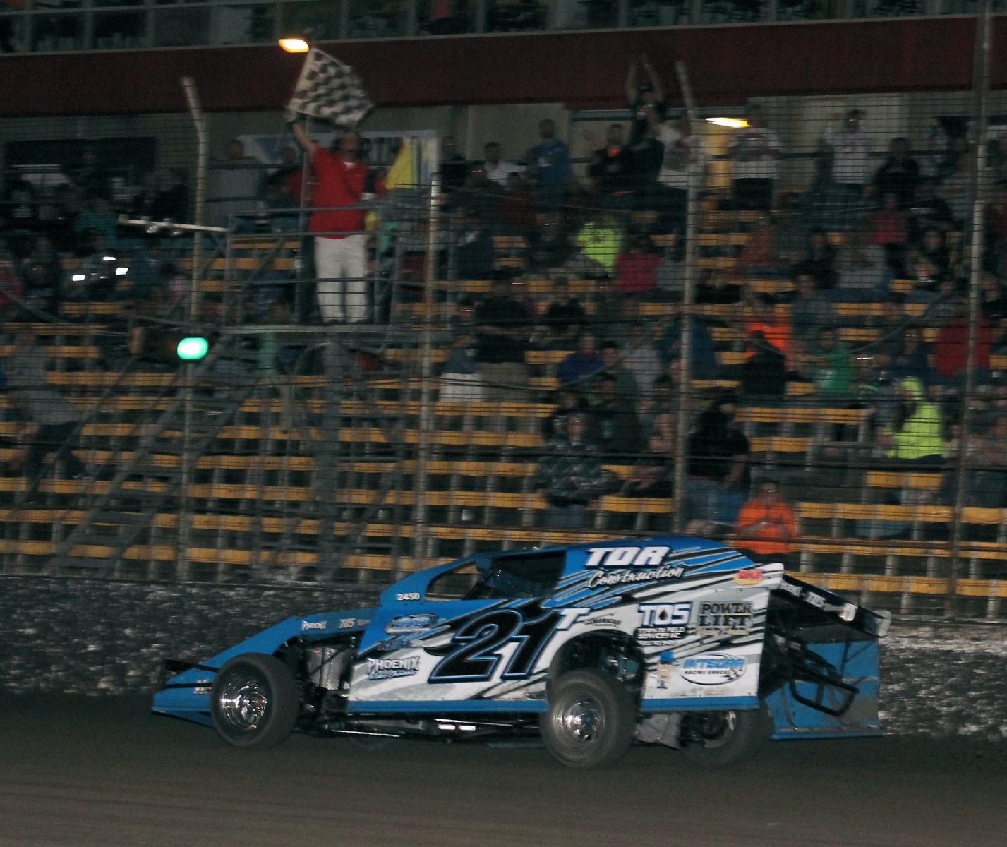 On the restart it was Smith who would rocket to the front. Smith, who started 12th on the grid, looked fast as he worked his way by the leader, Claxton, for the top spot. Once at the point position Smith wouldn’t be denied on this night. Lap after lap he would extend his lead until he took the checkered flag.