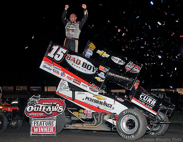 The triumph marked Schatz’s 18th World of Outlaws triumph of the year aboard the TSR Bad Boy Buggies No. 15 Sprint Car.