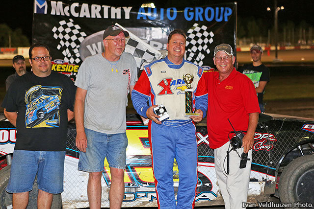 Heat race winners were Foster, Austin, Noll and Randy Ainsworth. The "B" feature was won by Shad Turner.