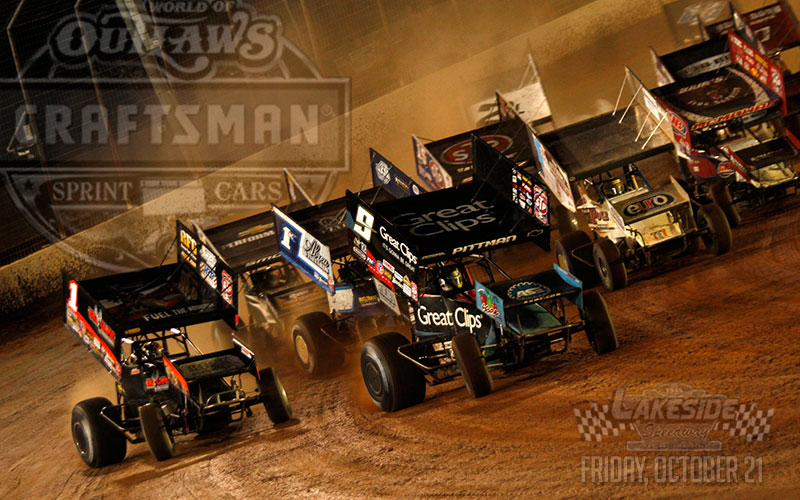 The World of Outlaws Craftsman Sprint Car Series has added Lakeside Speedway in Kansas City, Kan., to help close out the regular season on Friday, Oct. 21.