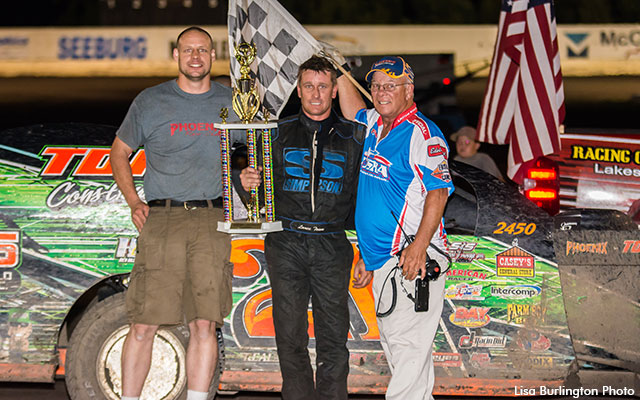 The two would battle at the front for a while until Town got the upper hand. At the front Town ran the race to perfection as he would score his first win of the season at Lakeside Speedway.